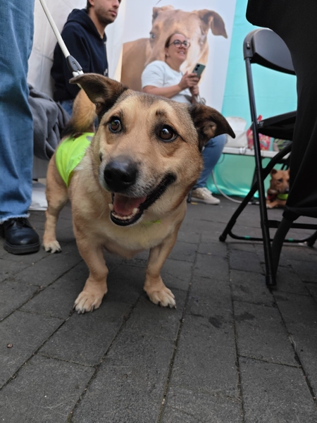 Pasea muy bien con correa, le encanta olfatear e investigar. Con las personas es amable, aunque no le gusta en exceso el contacto social.