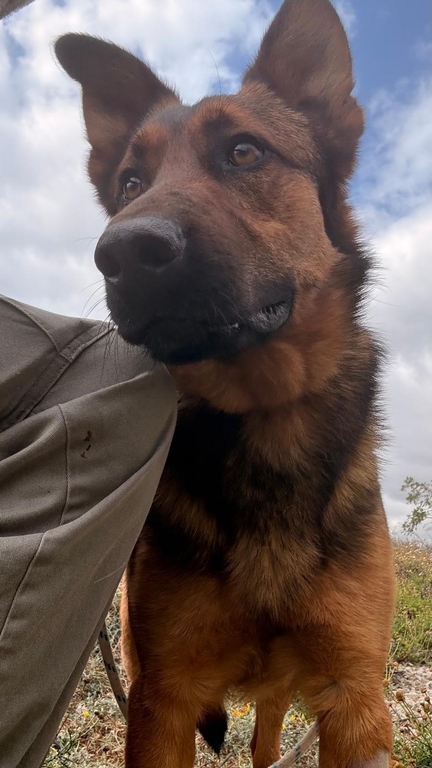 Musgo, Un perrito mix de Pastor alemán de 11 meses de De color marrón y negro Y tamaño Grande.