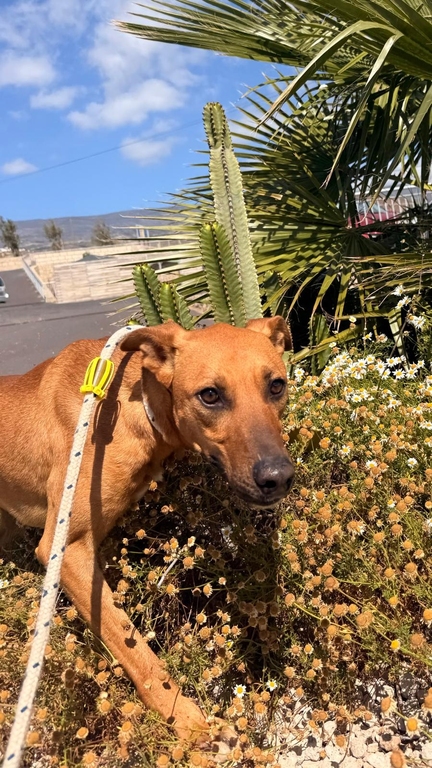 Le encanta pasear y va cogiendo confianza durante el paseo, si le das una chuche te lo agradece.