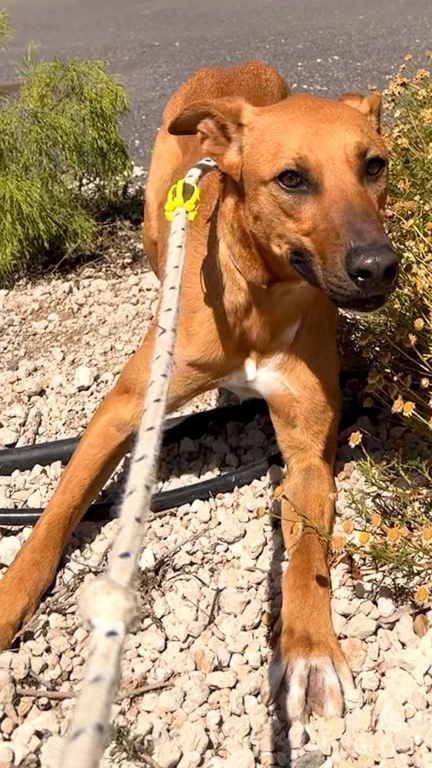 Cody, un perrito de acogida, macho de color marrón y tiene aproximadamente 10 meses,