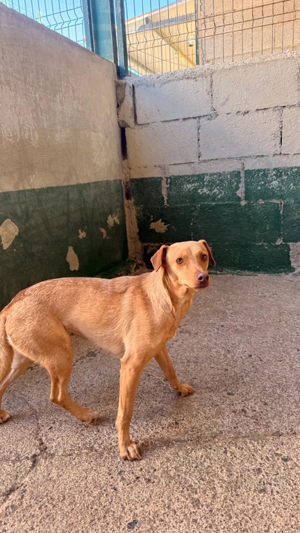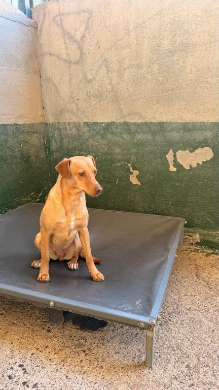 Esta perrita llego al refugio con mucho miedo y muy tímida, en el refugio se esta trabajando con ella y con la labor de las veterinarias y voluntariado esta empezando a coger confianza.