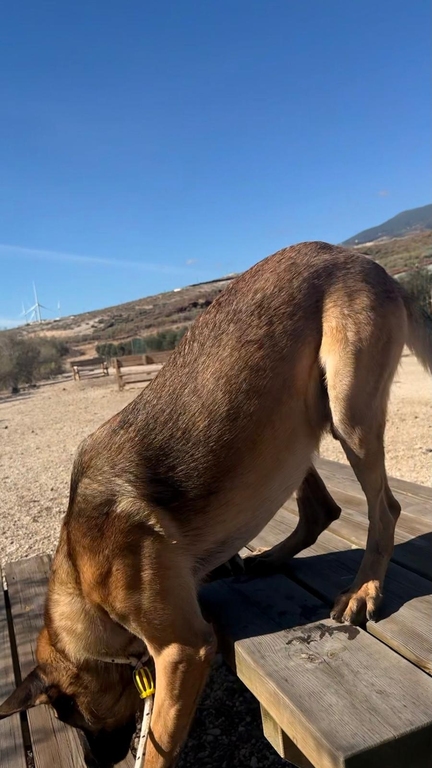 Convive solo en el chenil porque presenta mucha ansiedad al estar encerrado y no salir de paseo a diario. Tren necesita muchos paseos y que lo cansen para poder sentirse feliz y tranquilo, por ello buscamos una familia que le guste aventurarse y salir de excursión. También necesita espacio en el hogar donde viva, ya que es un perrito que demanda mucha energía y espacio.