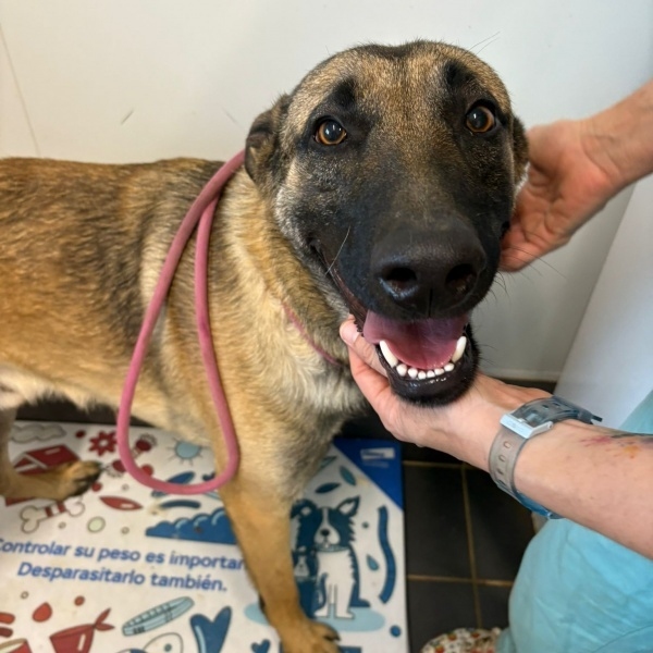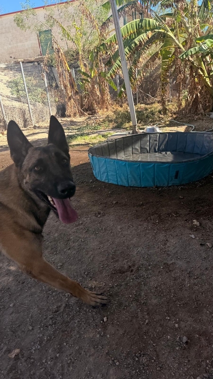 No ha convivido con otros perritos, pero estamos seguros de que en un entorno más relajado y con otros perros de menor energía, podrá congeniar.