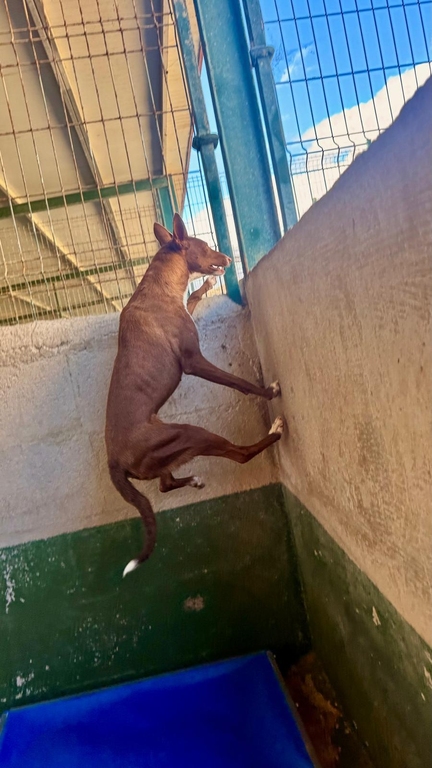 RAVIS es una podenquita joven, que llegó a Tierra Blanca en julio de 2025.