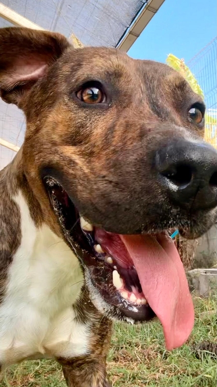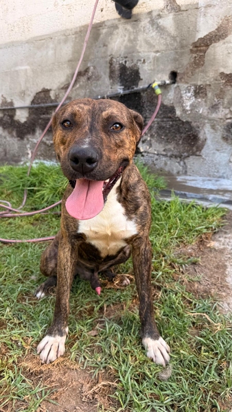 DANDY es un perro de tamaño mediano, joven y mix de presa canario.