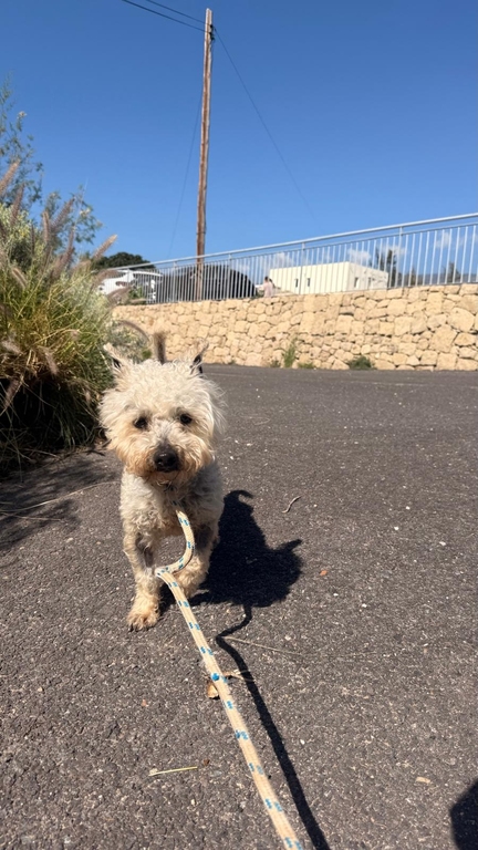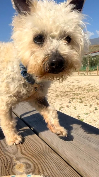 Casper, un perrito de 5 años, tamaño pequeño y color blanco.