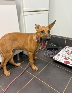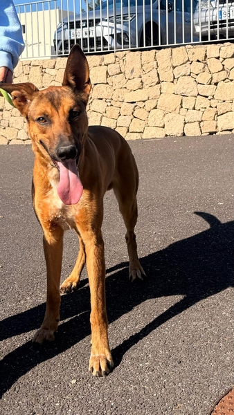 Zack, un perrito de acogida, macho de color marrón y tiene aproximadamente 10 meses