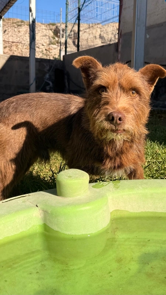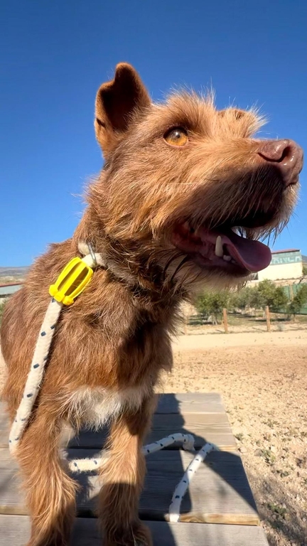 Es un perrito super bueno, pasea estupendamente con correa y muy cariñoso con los humanos y perritos, convive con tres perritas en el mismo chenil.
